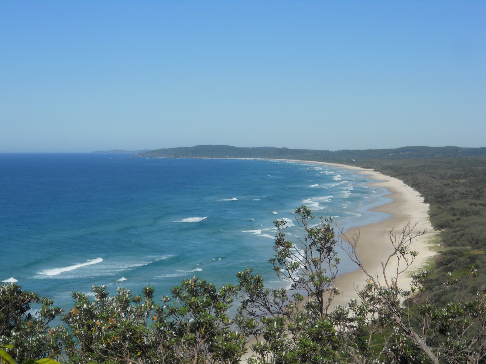 | Stephanie on the beach at Brunswick, Byron Head to the South |
