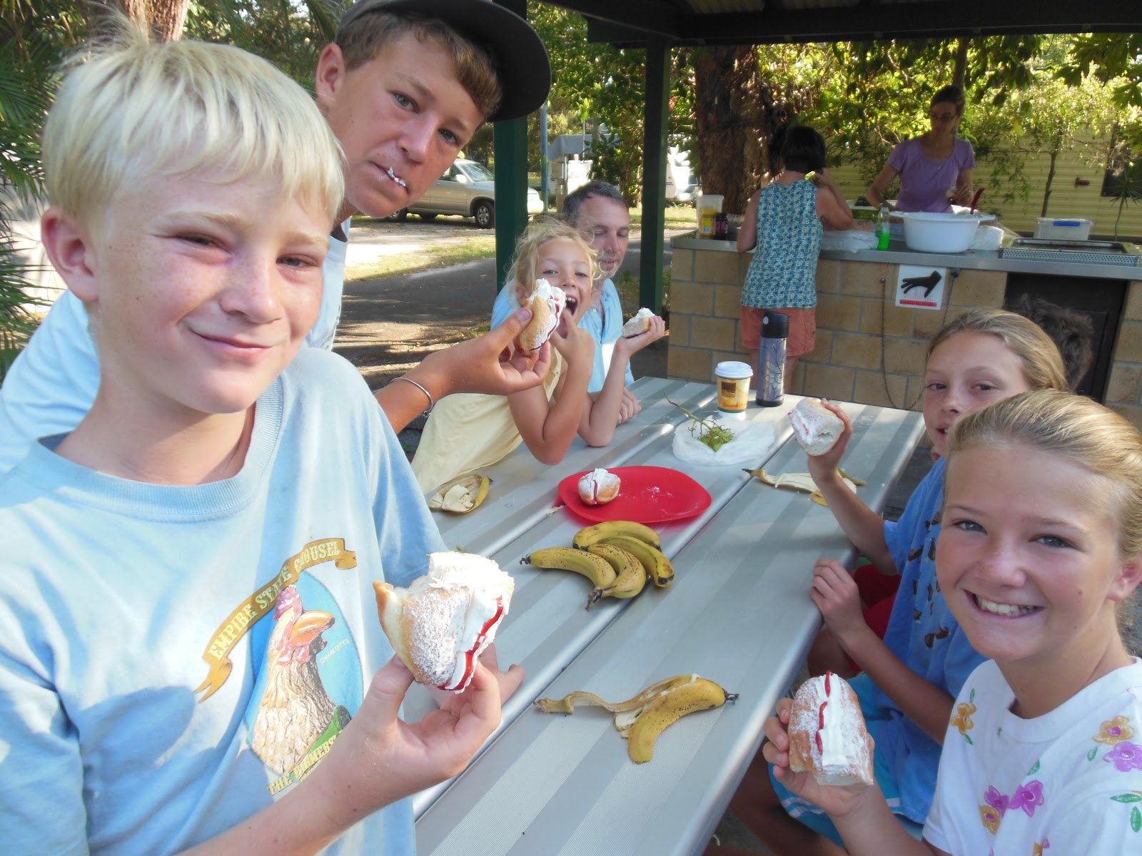 Our good friends from Cooperstown, NY, Gerald and Colette Landry, came to Cleveland, Queensland as part of their “great adventure down under”. We travelled quite a bit, saw some of the sights of SE QLD and NE NSW, with eight (!) kids in tow…It all went really well, we had a blast catching up with news from home, and showing them a bit of our life in Australia off the usual tourist track….And the food and wine were marvelous…!