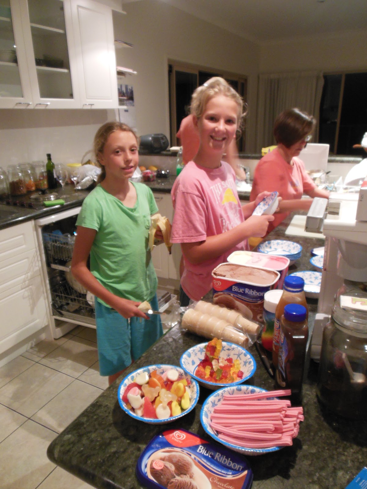 Our final night was going to be a real Aussie send-off banquet; fresh caught Mud and Sand Crab salad appetizer, with butterfly leg of local lamb on the grill with appropriate (and plentiful!) wines. The grand finale: Claire and Genevieve’s famous sundae-bar…Too good, completely…!