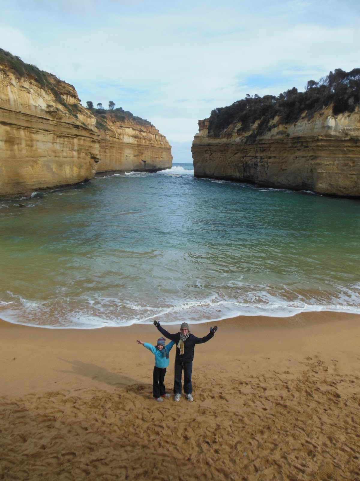 The GOR has an amazing history. It began as a jobs project for returning WW1 veterans and took over 20 years to complete. It runs over 100 miles along some of the most remote and rugged coastline in Australia. There’s a string of tiny old fishing and resort settlements strung along the coast and backed by the temperate rain-forested Otway Mountain ranges, now all preserved as National Parks. In summer season, booked out a year in advance, off season you have the place to yourselves…Per-fect…!