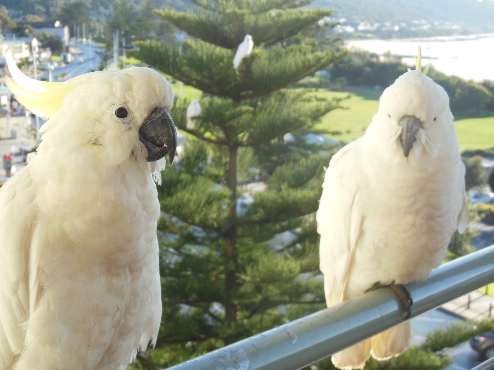 Australian birdlife is amazing. Here in Lorne, raucous, wild, Sulfur-Crested Cockatoos come right to your balcony for a handout. They are so intelligent and exotic, you can’t help yourself…which only encourages the neighbors…Before you know it, a full-fledged Cockatoo riot, complete with fisticuffs….!