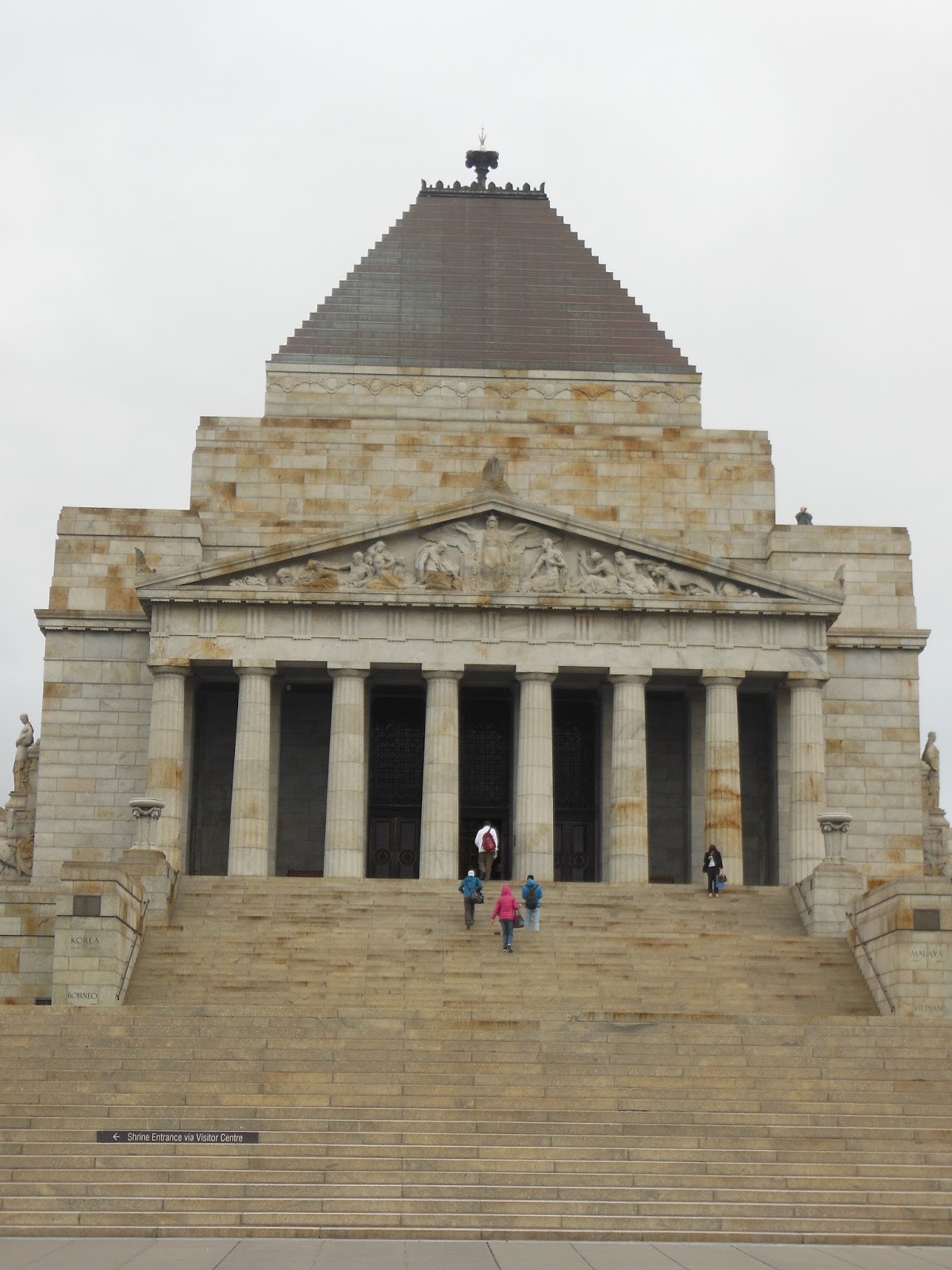 The Shrine of Remembrance is a very moving tribute to the Australian war dead of WW1. It sits near the Botanical Garden on a hilltop overlooking the entire city. Made entirely of hand carved local stone, it’s oriented so that on the exact annual date and time the Armacist was announced, a beam of sunlight enters the room and crosses silently over the tomb of the unknown soldier for 15 minutes. Very Indiana Jones…They do a simulation on the hour….