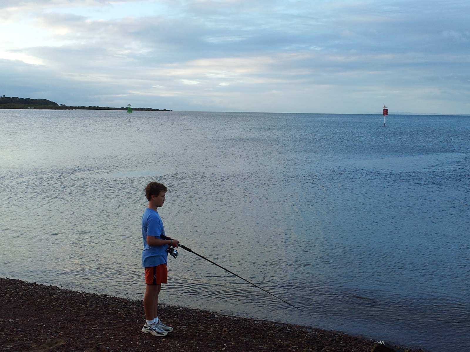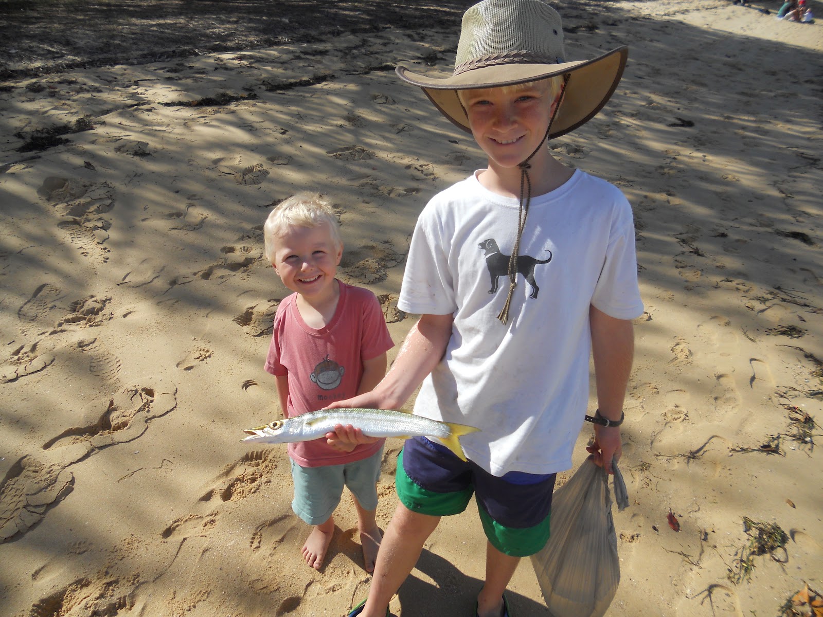 Aidan had a major success, catching a large and very desireable Flathead right off our local beach. Called a Lizard locally, the meat is white, chewy and mild. Similar to a lobster tail..