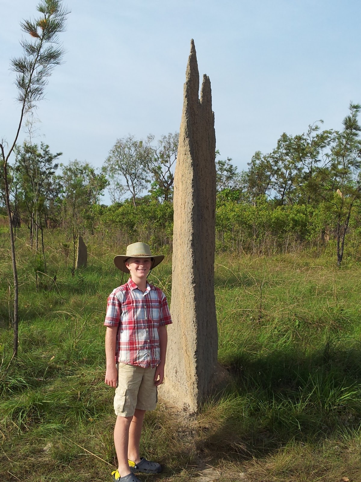 Getting closer to Darwin, we came upon a large field of Magnetic Termite mounds. A different species than the Cathedral, they actually orient their thin mounds North to South, keeping one side of the nest in the shade all day long. Internal temperature recordings confirm that this keeps the nest dramatically cooler than a random or East-West orientation…fascinating stuff….!
