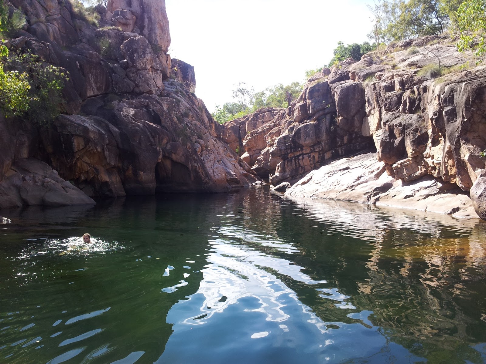 OK, outback adventure, third and final installment, promise…Thanks for sticking it out…Up early, into Koolpin Gorge…Not psyched to climb all the way back up into the third pool, due to fatigue and general bad juju…Water calm, clear…hmmm… inviting….No Crocs evident, anyone up for a morning dip with the Salties…? What are the odds….? A thousand times safer than the drive out here, statistically speaking, I’m sure….So there we were, feeding up “crumbed children” to the Crocs…(see the attached video evidence…) Some example of a father you are Dr Nolan…….I mean really…! Guards and lookouts posted, a quick dip…. no limbs lost, or even skinned up….Sublime…and a real wake-up, I guarantee…