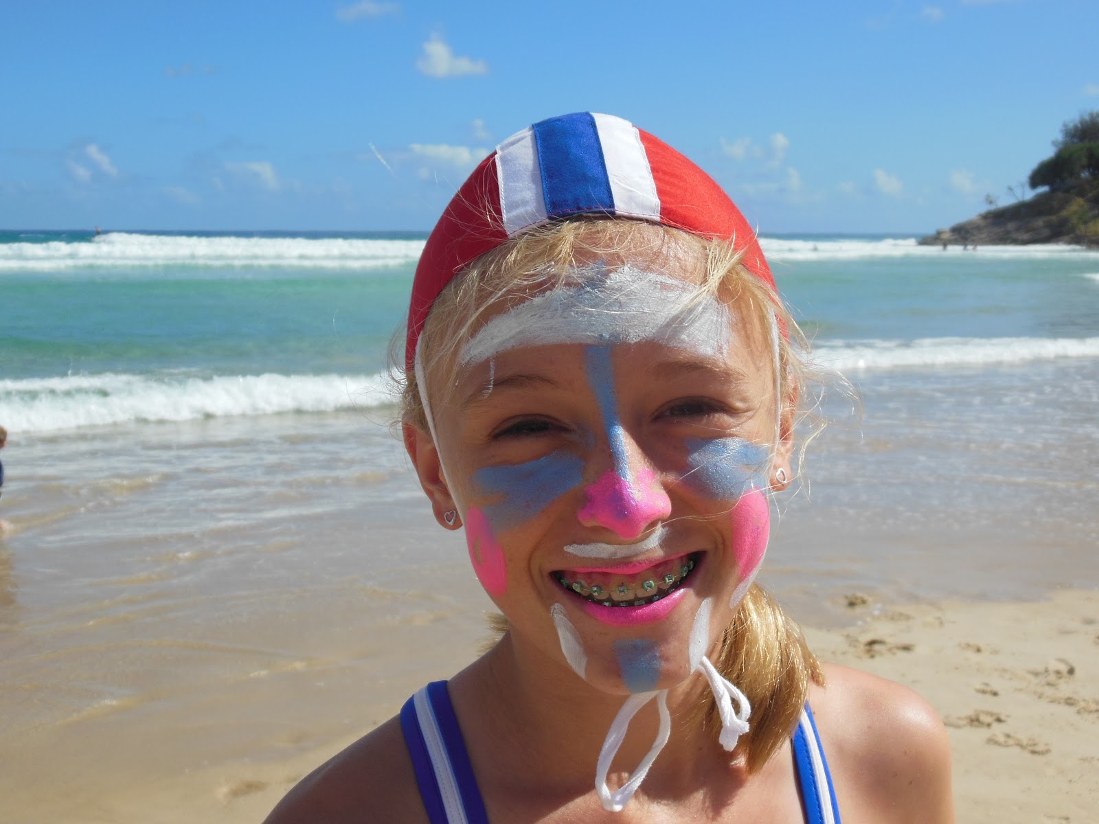 We wanted the kids to join an Aussie activity that would give them a deeper appreciation of Aussie culture, but didn’t want to spend weekends sitting on bleachers watching amateur cricket or rugby in the hot sun. So they agreed to Surf Lifesaving. It’s an Aussie institution, run by volunteers and donations. It’s also a widespread social organization, that takes even very young kids, beginning at age five, aka “Green Caps” and works them up through the ranks as “Nippers” ages 6-14 ,until they attain eventual status as Surf Lifesavers in their mid-late teens. It’s also a very fun, active (and tiring) day at the beach…