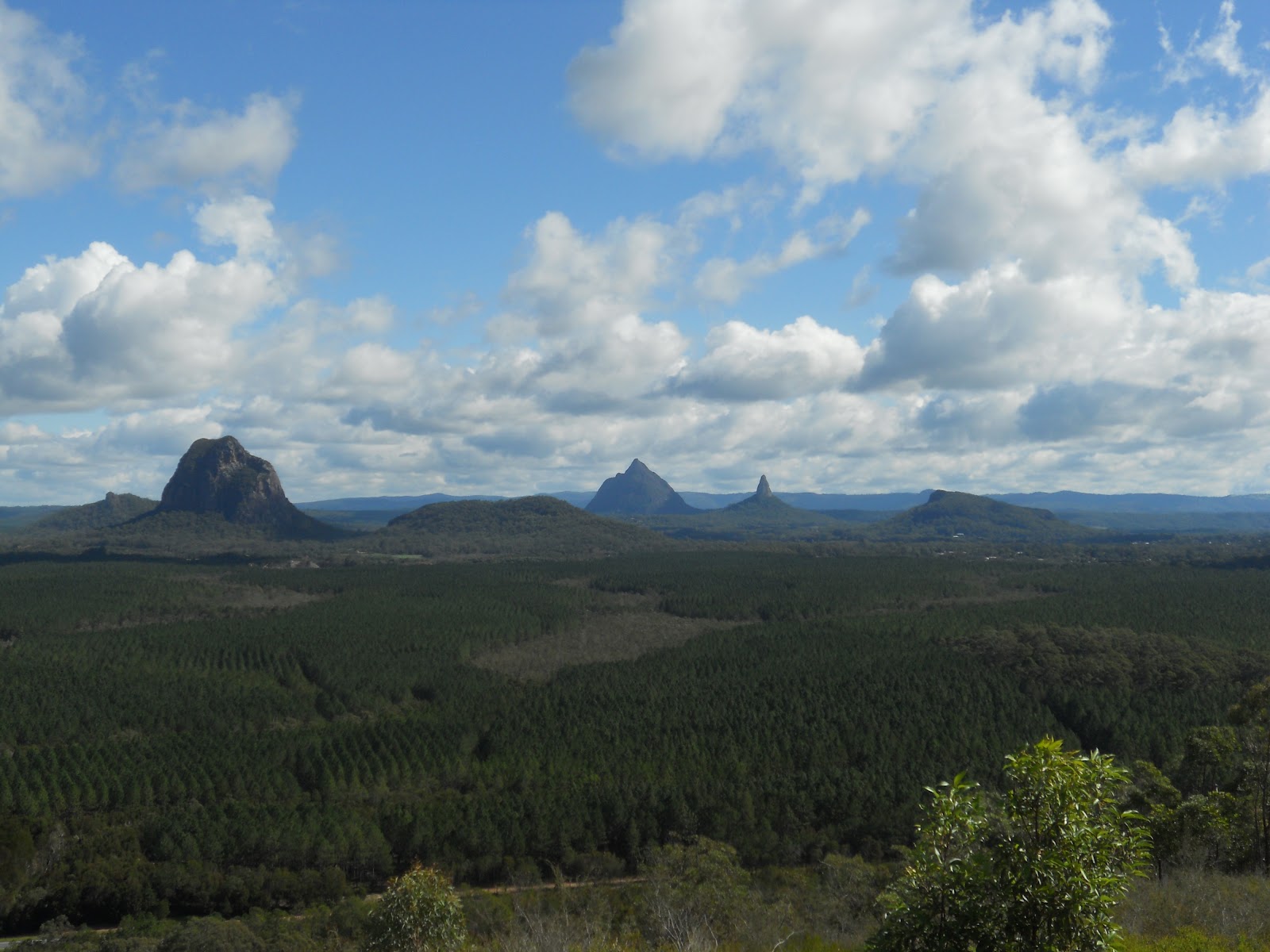 We finally made it up to the Sunshine Coast, a 100 mile stretch of beautiful beaches running north of Brisbane. You first pass through the ancient, volcanic landscape of the Glasshouse Mnts., culminating at the high-end resort town of Noosa;