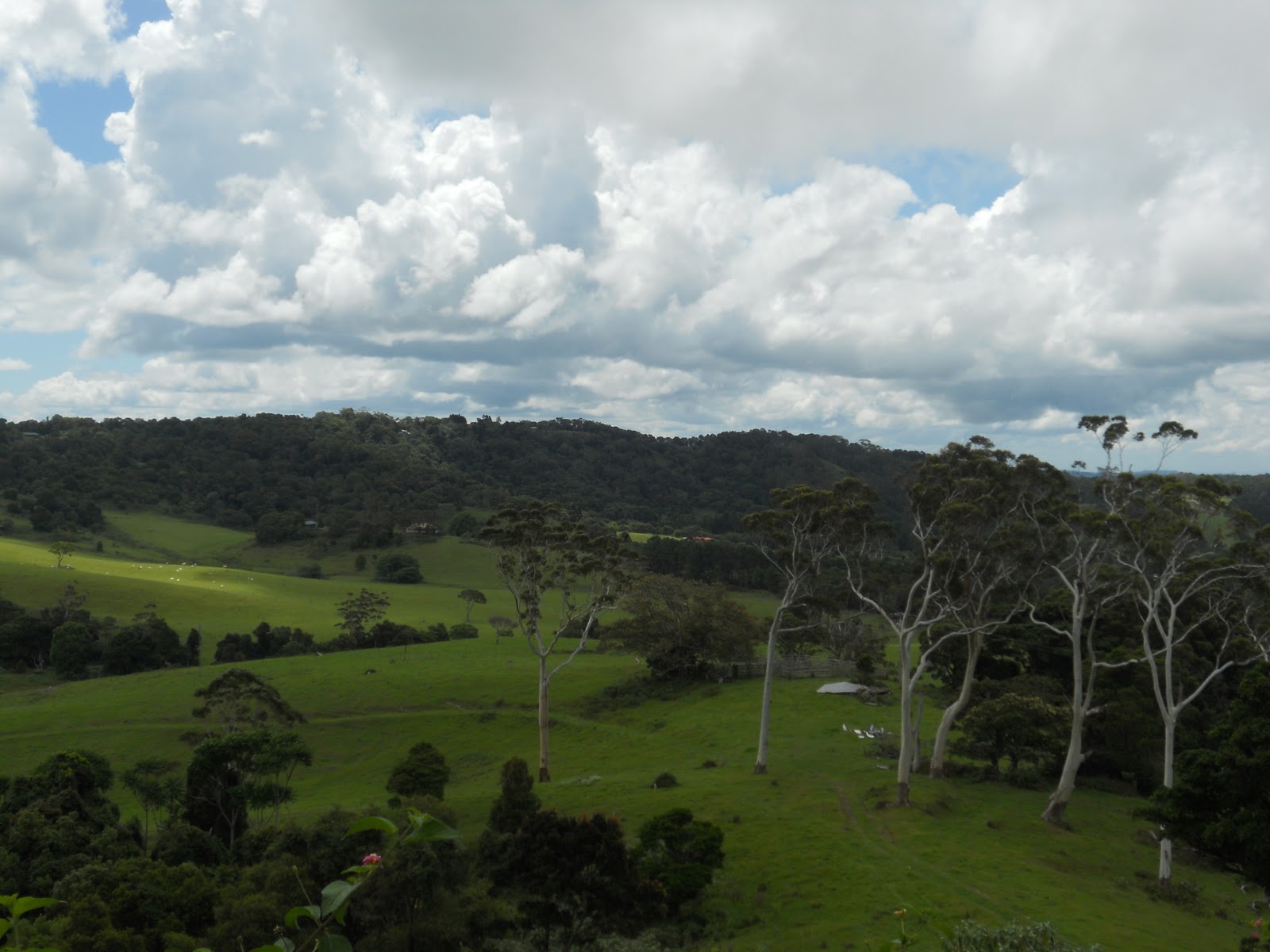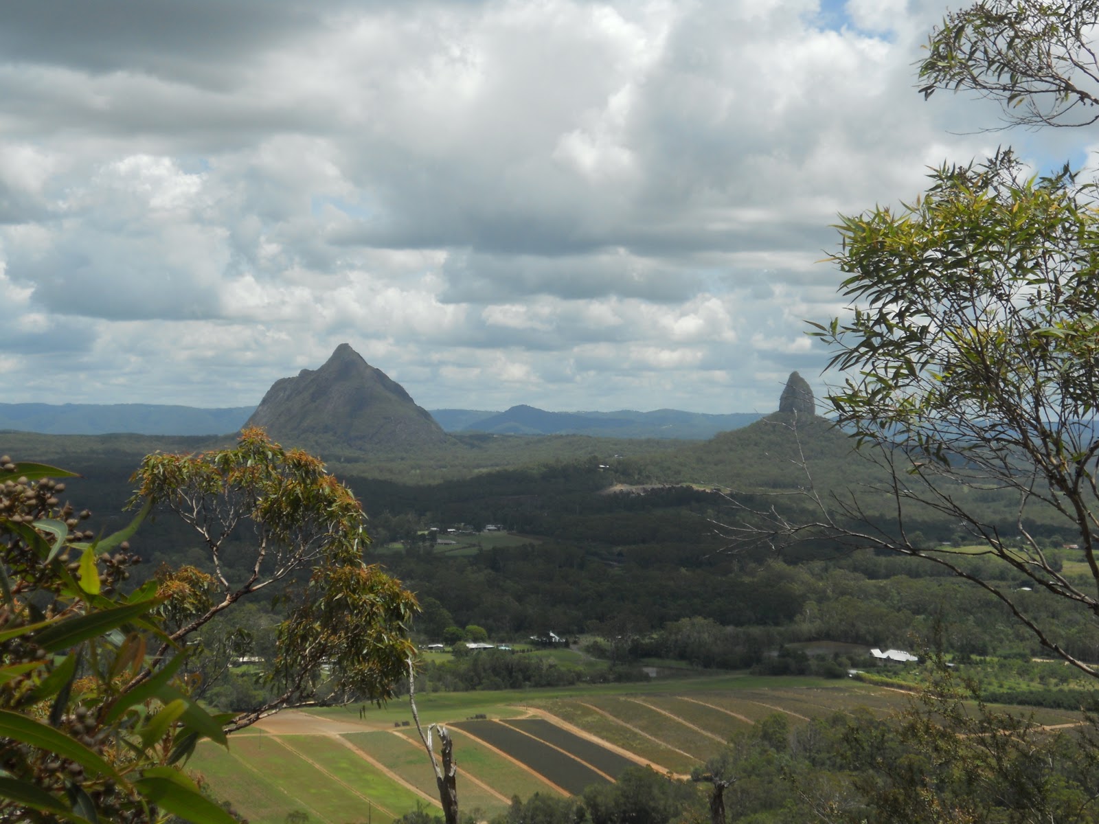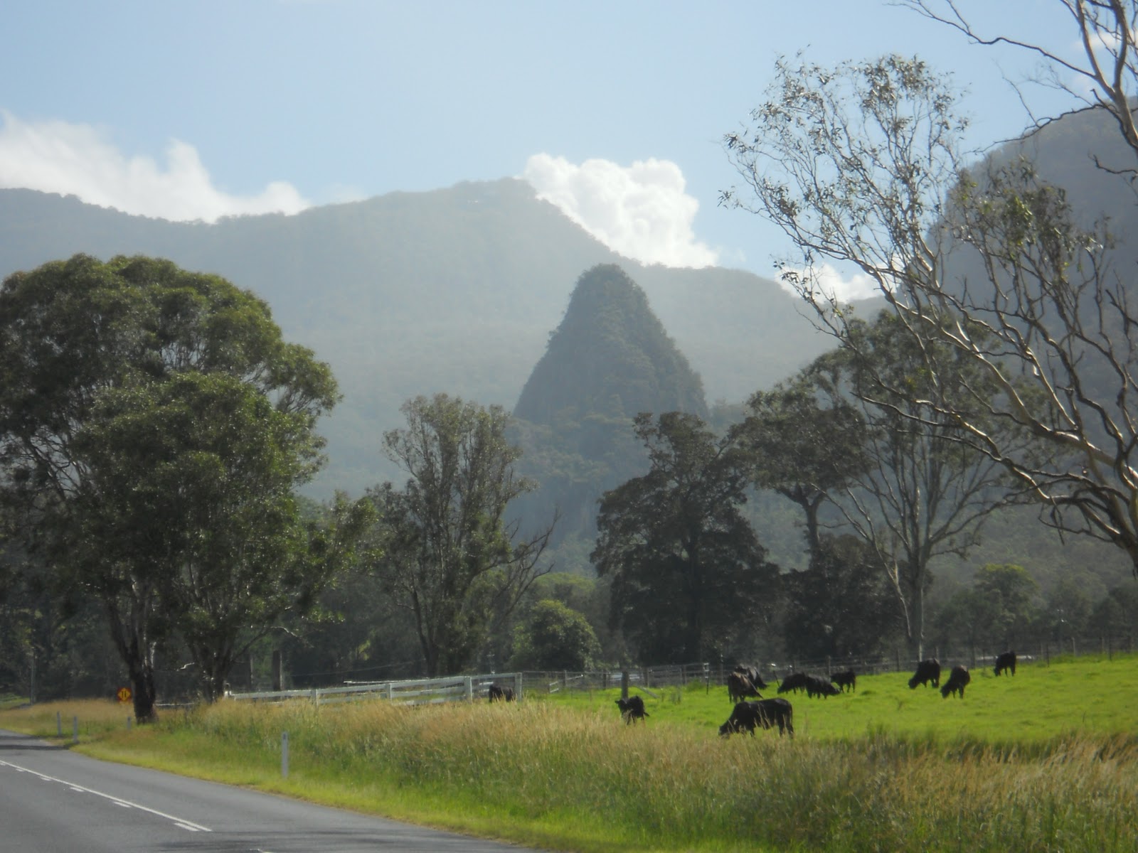 In the weeks after landing and adjusting to the southern hemisphere, we’ve begun to get out and about a bit more within a few hours of Brisbane. Queensland is blessed with an amazing 2000 mile coastline, fronting a fertile coastal plain and backed up by the forested mountains of the Great Dividing Range. These mountains catch most of the moisture coming in off the Coral Sea and are spectacularly lush and diverse. Over the range, the dry side stretches on for thousands of miles, gradually transitioning from drier open eucalypt and pine forest, through grazing rangeland and finally out into the vast, arid outback of lore and legend. We haven’t made it out that way yet…In short, a vast, diverse series of habitats, much of which has been preserved in an assortment of parks and preserves. Queensland alone has something like 75 National Parks.. We hope to visit as many as possible. Here are a few shots of several, esp. Springbrook and Glass House Mountains, both remnants of Australia’s volcanic past, some 20-30 million years ago, and seemingly right out of the Lost World. Enjoy the scenery…!