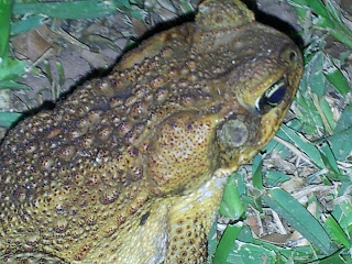 As a bonus tonight , for your loyalty as regulars to ddu, I have a special treat, unrelated to the sea.. Behold , the lowly, but infamous Cane Toad! Not native; a transplant from Indonesia or somewhere, brought in to eat the bugs in the sugarcane fields. But now sadly, run amok. Looks and acts just about like any old toad..but notice carefully the large venom sacs just behind the eyes. Full of venom lethal enough to kill your dog in minutes, but only if Fido is really asking for it.. Otherwise, you can look, but you better not touch…Another oddity in a long line of such…I will try my best to dig up a few more for your entertainment. Tonight, just be thankful if you have regular old garden-variety toads in your gardens at home. They really are your friends….Best, ddu