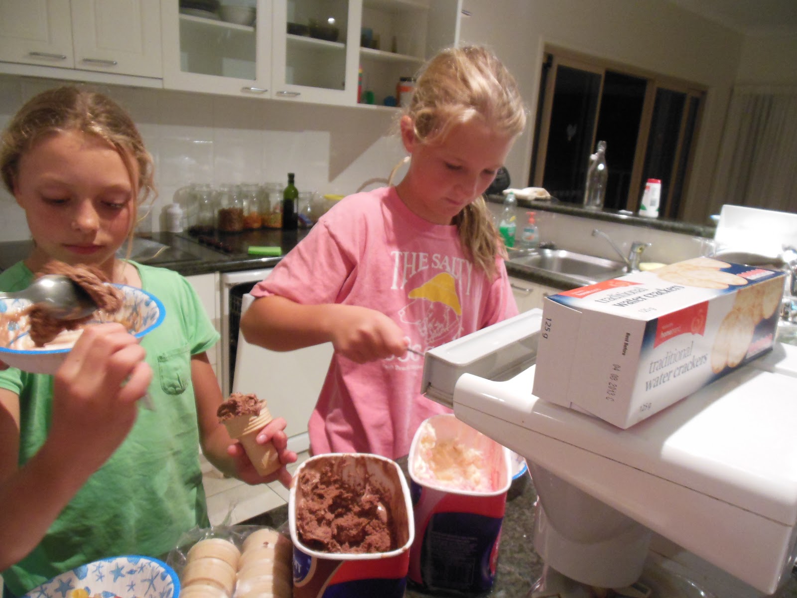 Our final night was going to be a real Aussie send-off banquet; fresh caught Mud and Sand Crab salad appetizer, with butterfly leg of local lamb on the grill with appropriate (and plentiful!) wines. The grand finale: Claire and Genevieve’s famous sundae-bar…Too good, completely…!